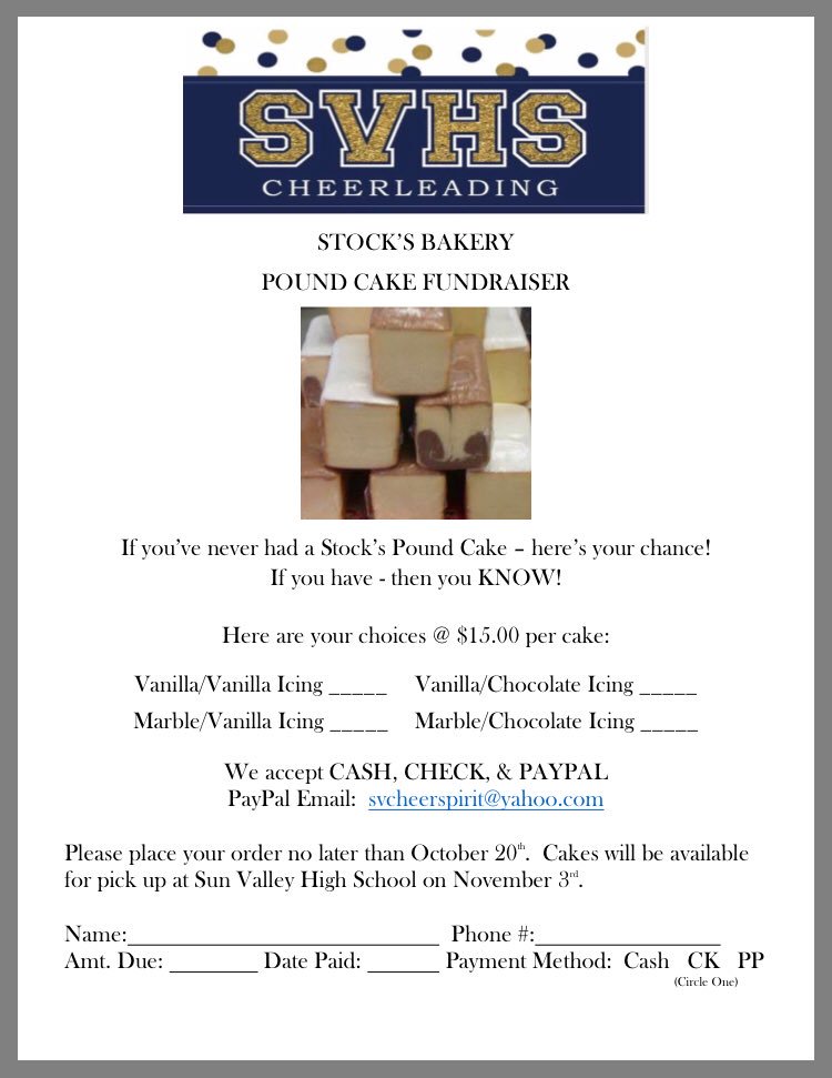 Stocks Pound Cake fundraiser is still in full swing. Stocks Pound Cakes Fundraiser Pickup Day. Get 247 customer support help when you place a homework help service order with us.